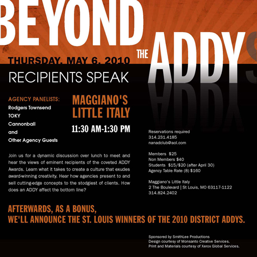 More information at the AdClub’s site, or by calling 314.231.4185, or writing nanadclub@aol.com.