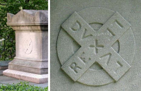 It was a real learning experience, filled with anecdotes (scandalous, heartbreaking, and humorous) about the famous and the forgotten. We spotted this symbol (above) on the side of a tomb not far from the famous Wainwright tomb, and had never seen the wonderful graphic inscription before.