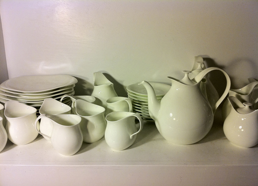 A portion of the Eva Zeisel Tea Set from the Imperial (Lomonosov) Porcelain Factory. Photo by John Foster.