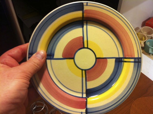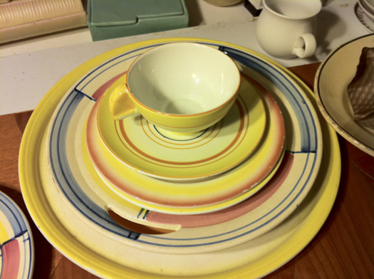 Plates, saucers and cup from the Majolika Fabrik, Schramberg, Germany, 1928 – 1930. Photo by John Foster.