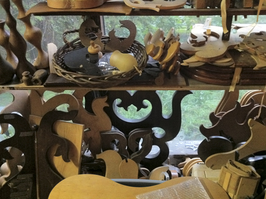 Starting from the home of good friends Aarne and Tina Anton, who happened to live in the same county as Ms. Zeisel, we made our way along gorgeous tree-lined roads. Fortunately for us, Aarne and Tina live less than five miles from Ms. Zeisel, so they were very familiar with the area. With Aarne as our guide, it wasn’t long before we turned into a gravel driveway, providing our first glimpse of our destination. In front of us was a two-story, early 20th-century frame farmhouse, quietly nestled about fifty yards from the road. A canopy of trees provided premature darkness for our late afternoon arrival, and I could see a warm light on in the front window. As we approached, telltale signs of creativity were evident. Window ledges ahead contained assortments of natural objects — a smooth shaped rock here, a thistle or shell there.