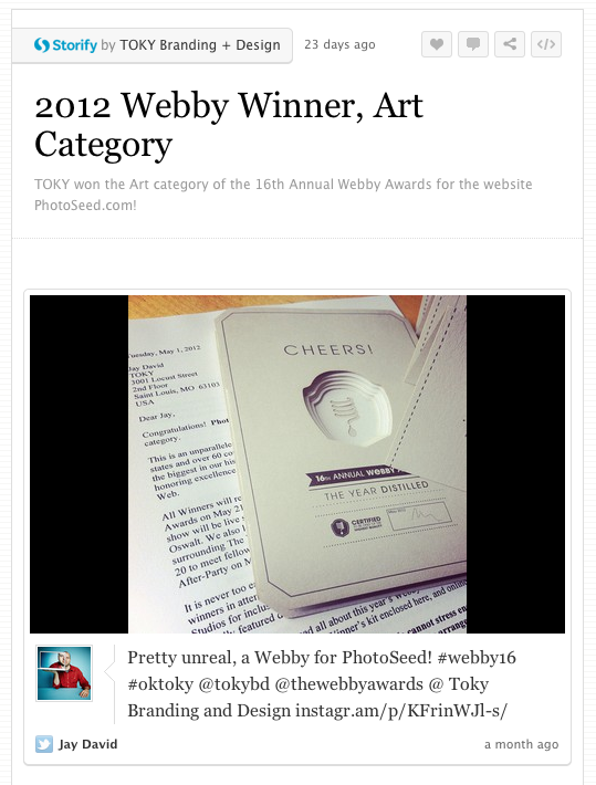 We’re using our Storify account to provide you this tweet-by-photo-by-video recap of our recent trip to NYC to receive our 2012 Webby Award. What a great adventure.
