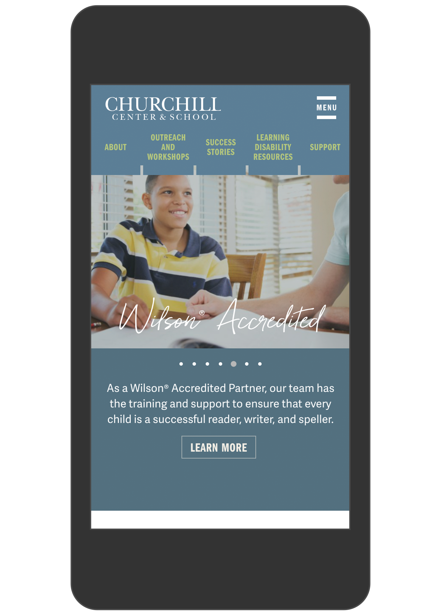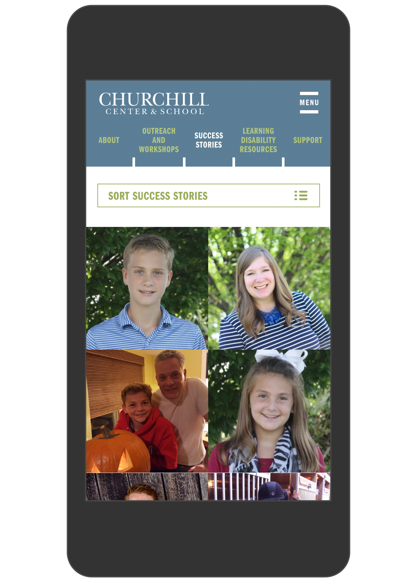 Interviews revealed that, when researching learning disability-focused schools, parents are looking for a place where their child can live a “normal” life, surrounded by students who are smart and happy, but learn a little bit differently. Churchill’s redesigned website is packed with bright, cheerful photography featuring smiling, successful students.