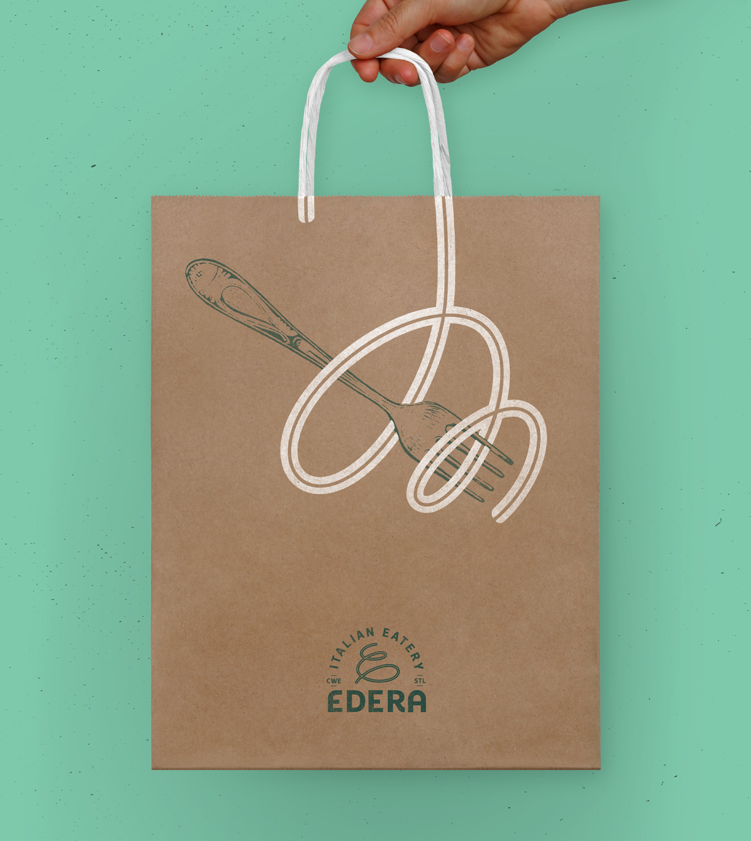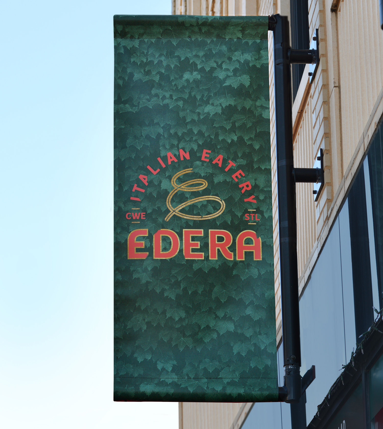 Edera (Italian for ivy), was inspired by the iconic ivy-covered walls surrounding the restaurant’s outdoor dining space. Much like the food, the Edera brand strikes a balance between upscale and approachable, combining traditional Italian typography with modern stencil lettering.